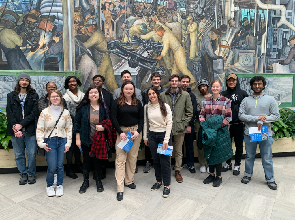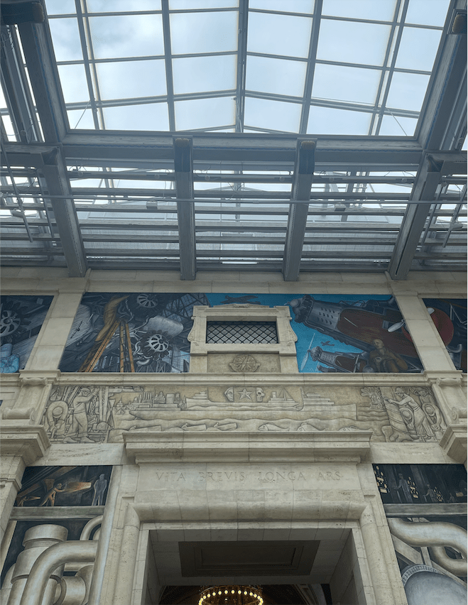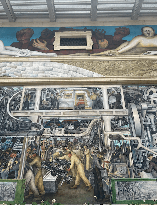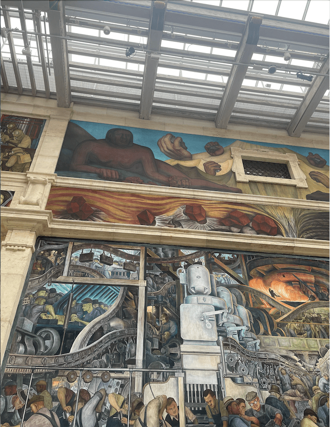 “An eye-opening experience”: this statement best describes my visit to the Detroit Institute of Arts (DIA), which was one of the most amazing field-trip experiences of my life. While I do not have a great appreciation for art in general, seeing Diego Rivera’s Detroit Industry murals in person left me in awe. Even though Dr. Pasqualina provided us with a thorough description and virtual walkthrough of the murals ahead of our visit, experiencing the actual space of Rivera Court—and how massive it is—was truly a once-in-a-lifetime experience.