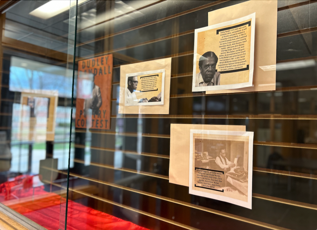 In recognition of National Poetry Month, the University of Detroit Mercy’s English Department has curated an exhibit at the McNichols Campus Library honoring Dudley Randall and the annual poetry prize the department sponsors in his memory. Now in its 53rd year, the Dudley Randall Poetry Prize continues Randall’s legacy of amplifying creative voices within the Detroit Mercy community.