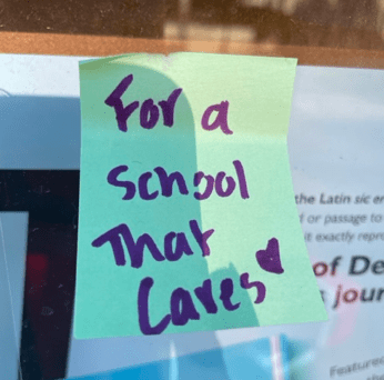 The funny thing is, I have grown to be grateful for a board in the middle of my college campus. A board that has collected smiles and little pieces of those around me. It has allowed me to shift my perspective and have a deeper appreciation for the little things, because even sticky notes and a few pens can truly make a long lasting and positive difference. So here’s number 11: For a school that cares.
