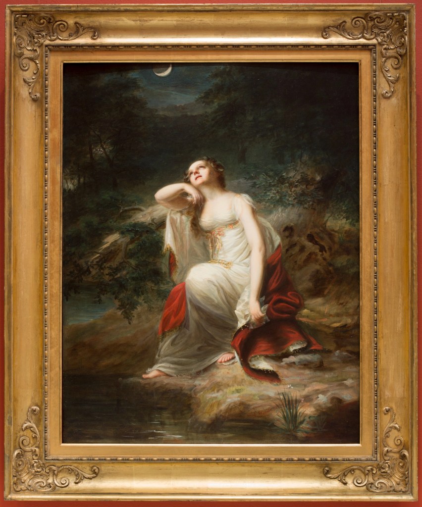 At the Detroit Institute of Arts (DIA), there were a number of paintings that spoke to me that I could probably write about for the rest of the afternoon. However, there was only one painting that felt personal, like it was waiting for me to find it: Despair by Samuel Lovett Waldo, located on the second floor. I almost walked past it because Kammie was trying to show me something she found in another room, and most of the paintings by it had portraits of domesticated mothers and chubby babies (which did not at all interest me), so I was surprised to see what looked to me like a teenaged face. I liked that she was on the ground, talking to the sliver of the moon above her like she was asking the universe for a favor.