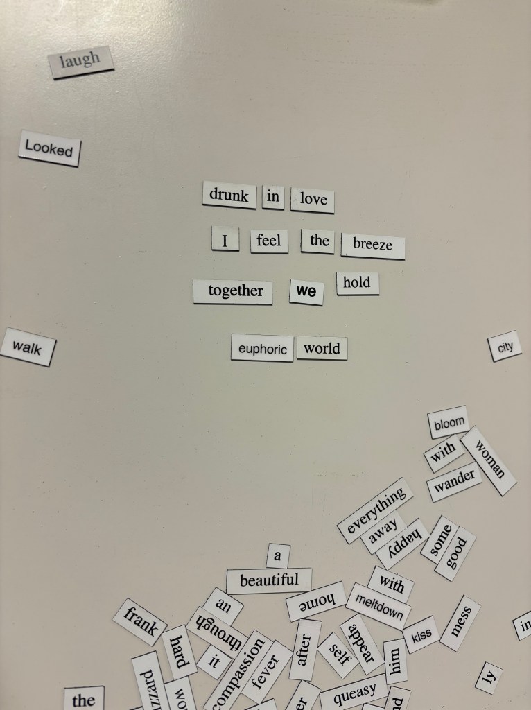 Congratulations to this year’s winners and everyone who created original work. The magnets will remain on the 2nd floor of Briggs, so come try your hand at your own magnetic poem–you never know who will discover your work as they pass by!